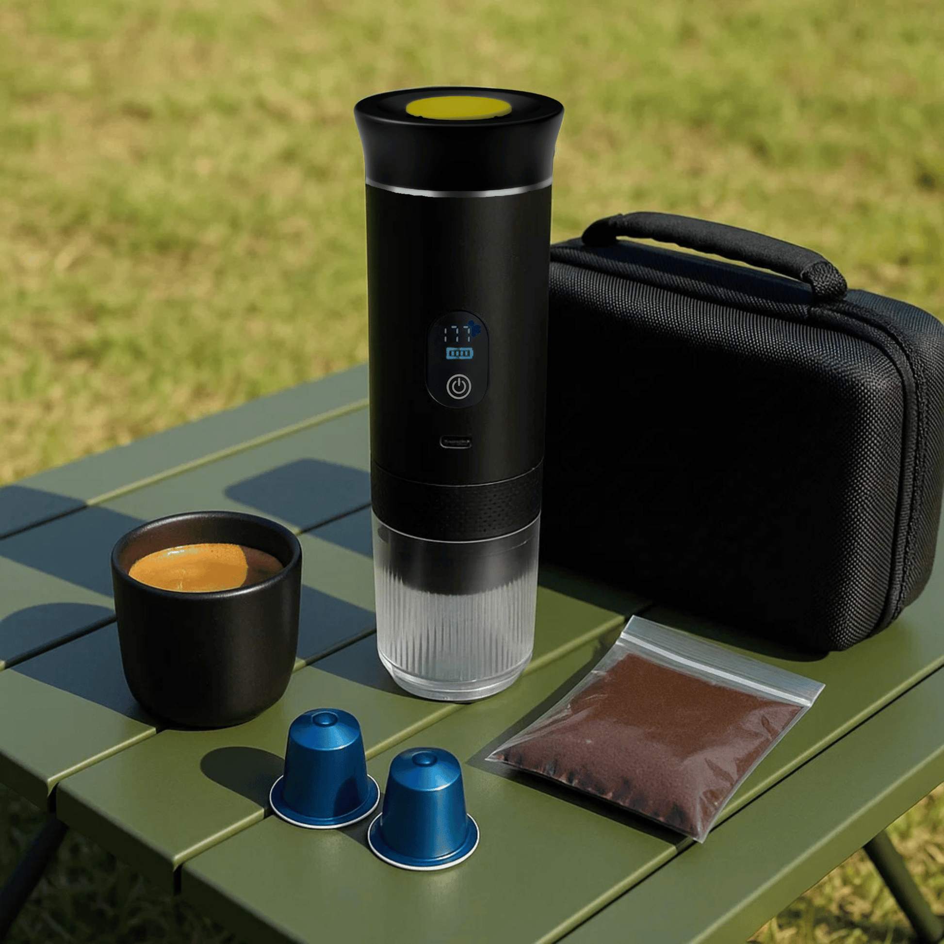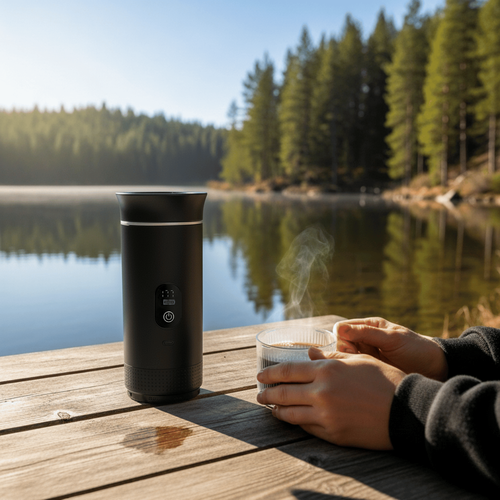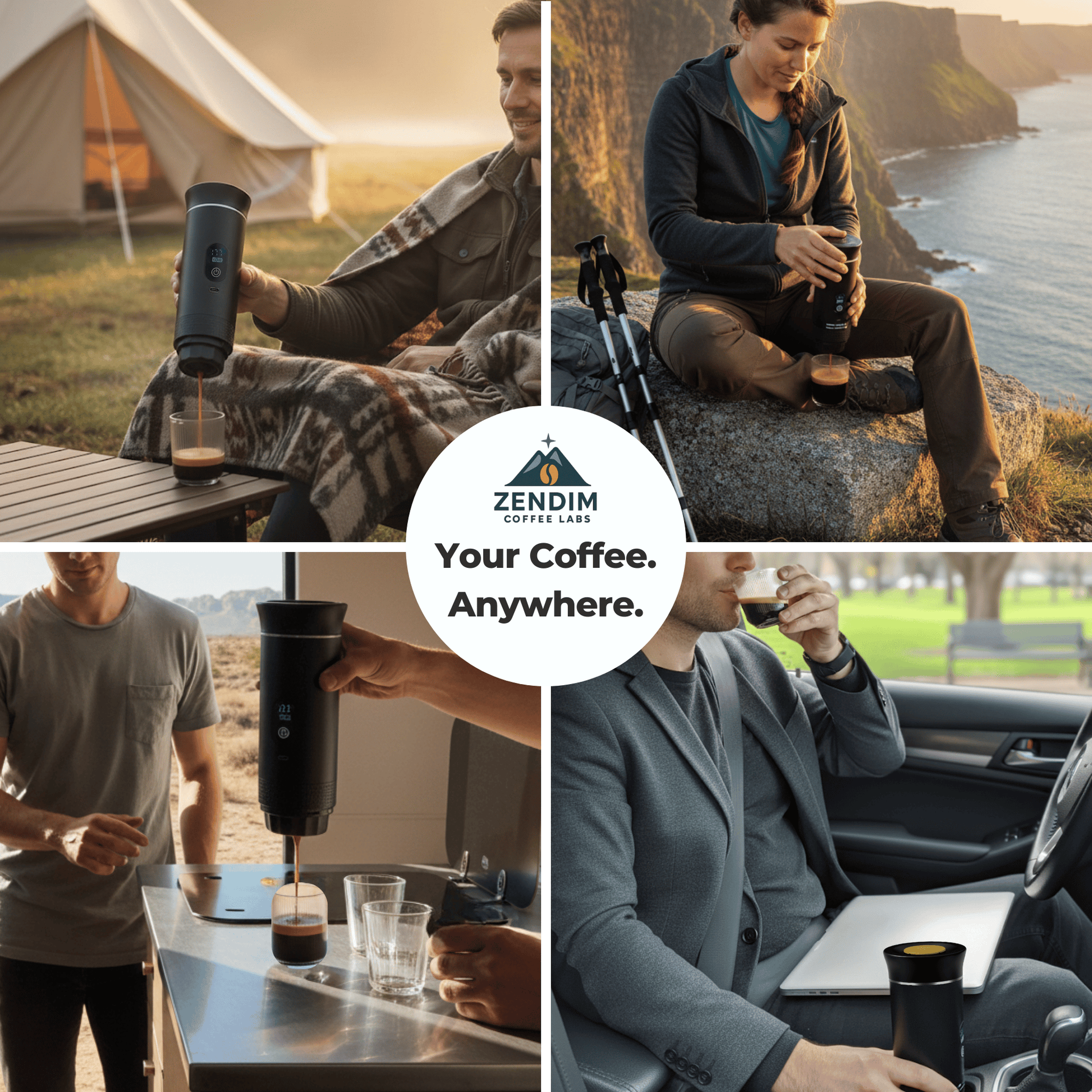 “Sipping espresso at sunrise by the campfire — ZenithShot made it effortless.”